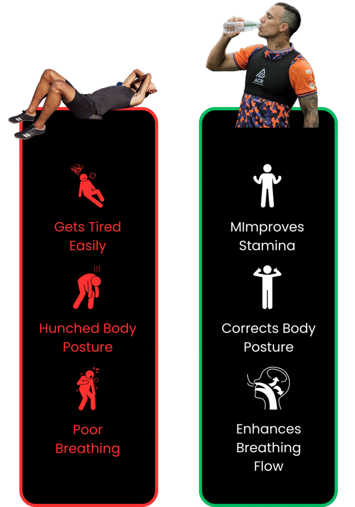 Dengan postur yang lebih betul, otot aktif secara semula jadi, bahu lebih stabil, dan dada kekal terbuka — membolehkan anda hasilkan lebih banyak tenaga dengan usaha yang lebih sedikit. Train lebih kuat, lebih laju, dan lebih selamat.
